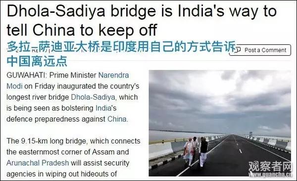 自从莫迪上台后,一直加强边境地区基础设施建设。从之前的报道看,先是投资建设边境全线电子监视网络,今年又将边境地区高速公路建设和升级改造纳入预算,冷战思维悄然显现。前一阵子的5月末,莫迪为靠近印中边界的多拉-萨迪亚大桥揭幕。这座总长9.15公里的大桥是印度目前最长的桥梁,据说能将从印度东北部阿萨姆邦到“阿鲁纳恰尔邦”(即中国藏南地区)的行程缩短7至8个小时,本地媒体说,印度用自己的方式告诉中国离远点。如果说到改变现状,这也算是其中之一吧。在外联方面,莫迪这几年出访频频,着力拉近南亚诸国,强势安排印度洋岛国,积极拉拢非洲国家,加强与合围岛链相关国家的军政联系,无不显示其谋篇布局背后的更深动机。