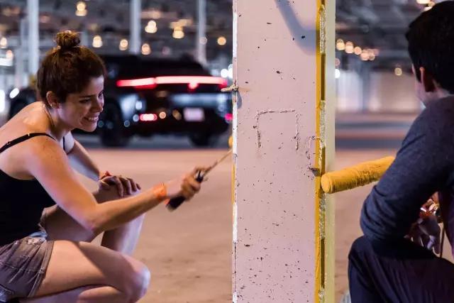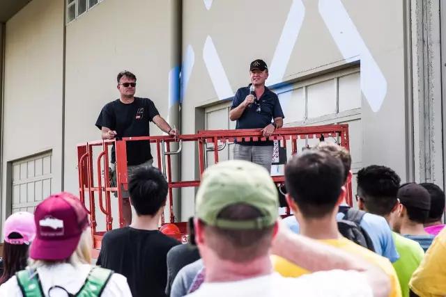 FF CTO Ulrich Kranz正在为工厂内的柱子刷漆