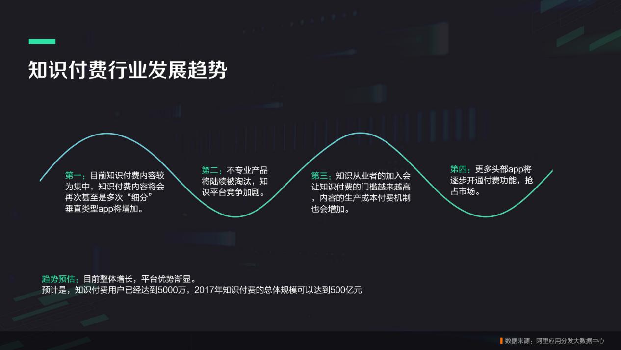 事实上,阿里应用分发经过对行业现状的梳理发现,目前知识付费内容较为集中,并未有体现重垂类用户特征的数据事实。当然,阿里应用分发认为,知识付费内容在未来将会多次进行“细分”。垂类知识内容将更受关注,腰部选手会获得更多机会,而头部选手则将逐步开通付费功能,会员制度逐步建立。
