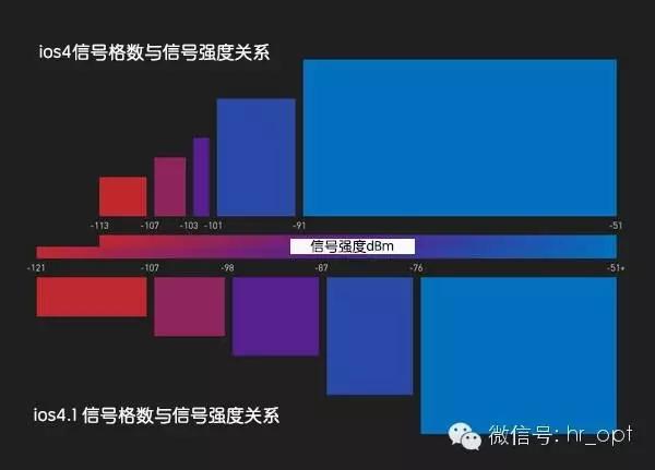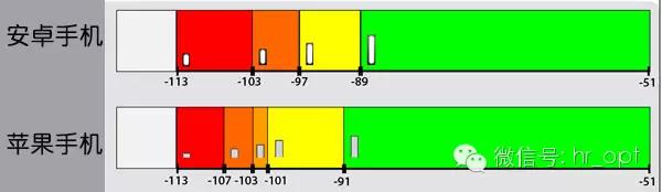 细心一点,你还会看到,安卓和苹果手机的信号格数与信号强度的对应关系是不一样的,甚至,苹果不同IOS版本的信号格数与信号强度的对应关系也不一样。