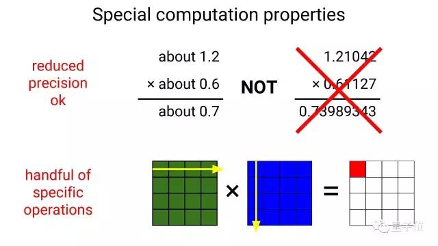 深度学习有两个非常好的特性。一个是完美的宽容了非常低的计算精度,另一个是能够处理多种不同的运算,所以我们有机会建造一个定制化的机器学习硬件系统,能够以极大降的低精度运算线性代数。