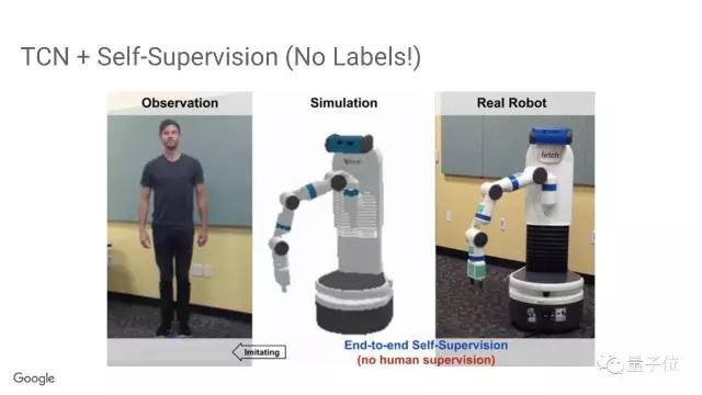 我们首先让模拟器里的机器人学习人类动作,然后再迁移到实体机器人。效果还不错。