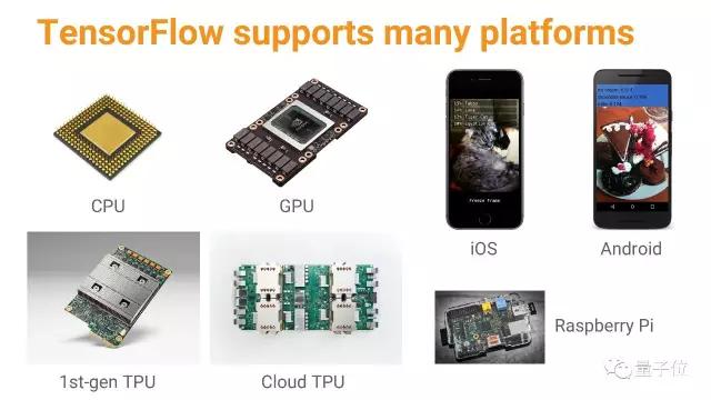 我们还支持多种平台,包括iOS、Android、CPU、GPU、我们自己的TPU,还有Raspberry Pi等等。