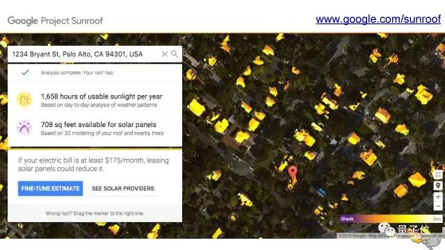 后来地图团队决定开发另一个程序,来识别你家房顶适不适合采集太阳能,装上太阳能板可以生产多少电。
