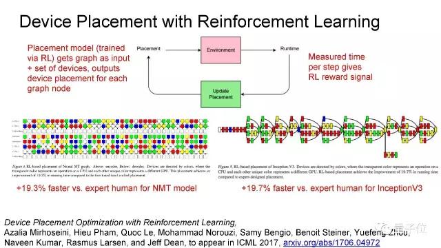 应用这个方法,我们在神经机器翻译模型、Inception-V3模型上,都获得了近20%的速度提升。此前,计算资源的分配智能通过人类专家手工摸索设置。