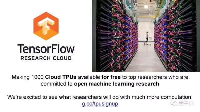 我们还把上千台这样的设备,免费提供给全球的研发人员使用,只要你致力于有趣的研究,需要更多的计算力,而且承诺会公开研究成果。我们想要构建一个科学和机器学习研究的生态系统,我们也希望得到使用TPU的反馈。