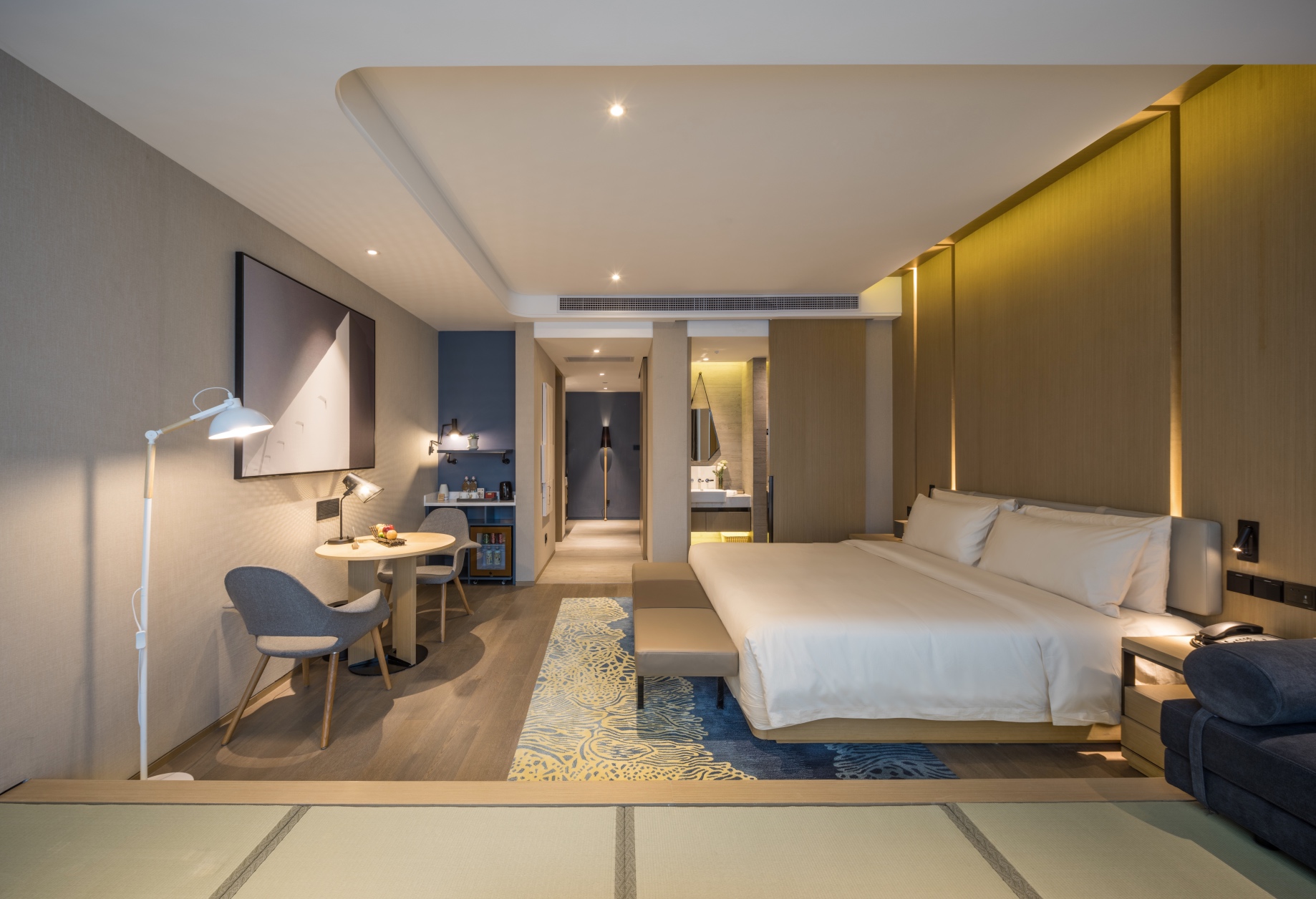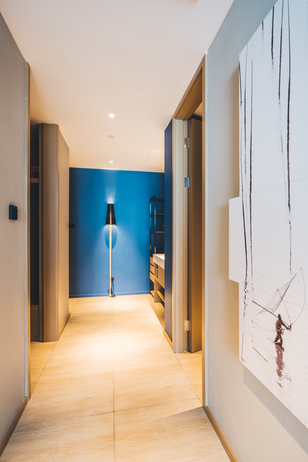 房间内走道,墙上还有简约艺术画