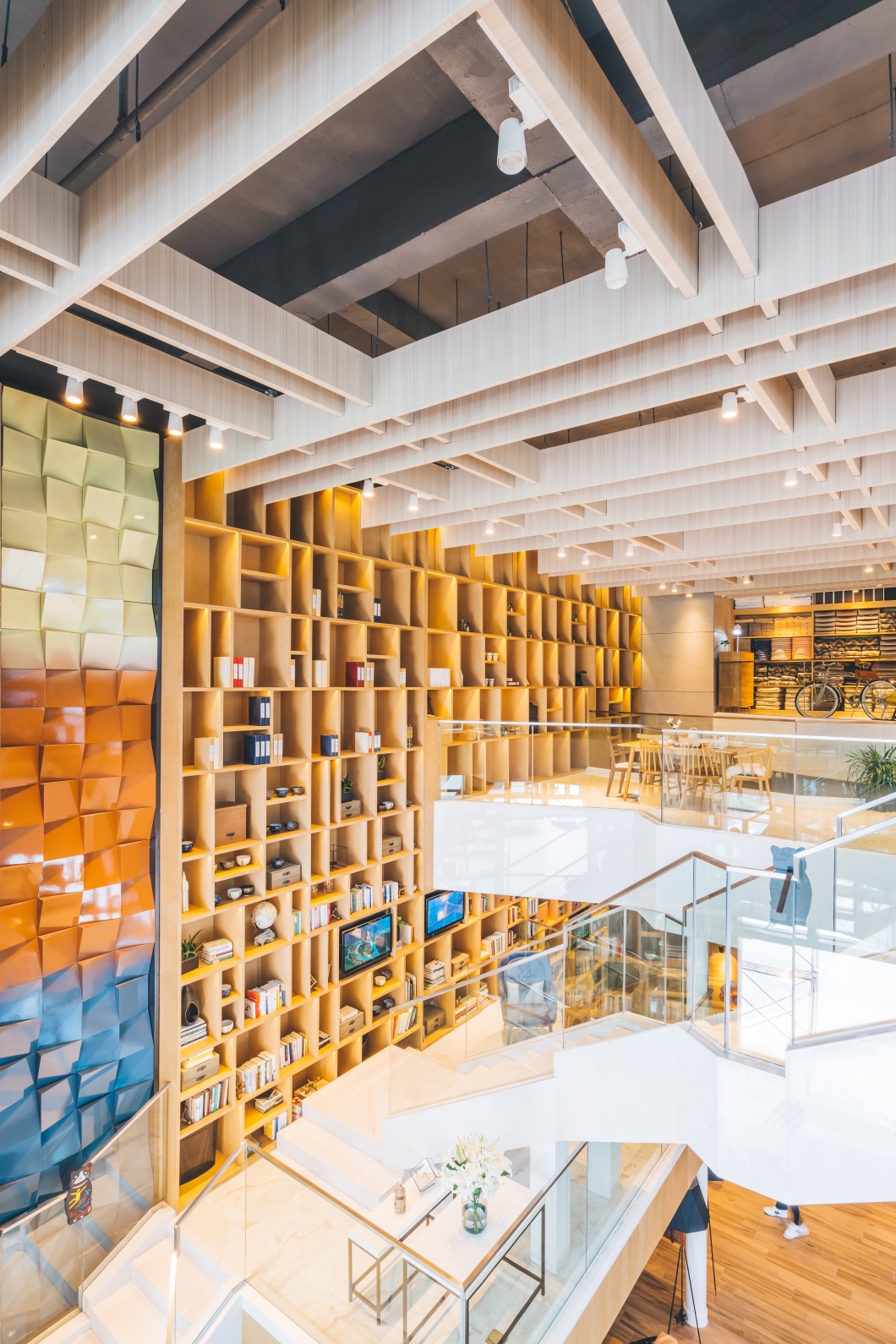 酒店大堂摆着一个超大的商品柜子