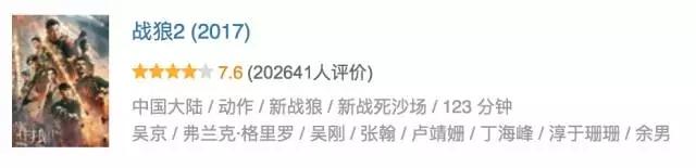 今年的暑期档,国产电影交出了令人称道的成绩单,当中《战狼2》无疑是票房与口碑双收的赢家。20万人为战狼2在豆瓣上打分,平均分达到了7.6。