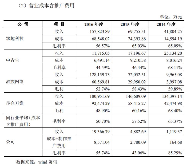 毛利率高是手游行业的普遍现象。根据国内已上市游戏行业公司披露 的公开信息,在包含推广费用的情况下,已上市游戏行业公司的平均毛利率在 50%以上;在未包含推广费用的情况下,已上市游戏行业公司的平均毛利率在 90%以上。报告期内,公司的毛利率均超过 95%,并且保持持续上升。