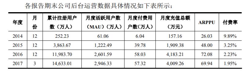 根据公司公布的运营数据,自从2014年公司推出了《宾果消消消》后,注册用户和活跃用户规模快速上升,月活从原来的61万人增长到了今年的接近3000万人。游戏的付费率则在逐步降低,从原来的有10%的用户到今天只有2%的用户付费;不过公司从每个付费用户身上赚到的钱,总体呈增长趋势。