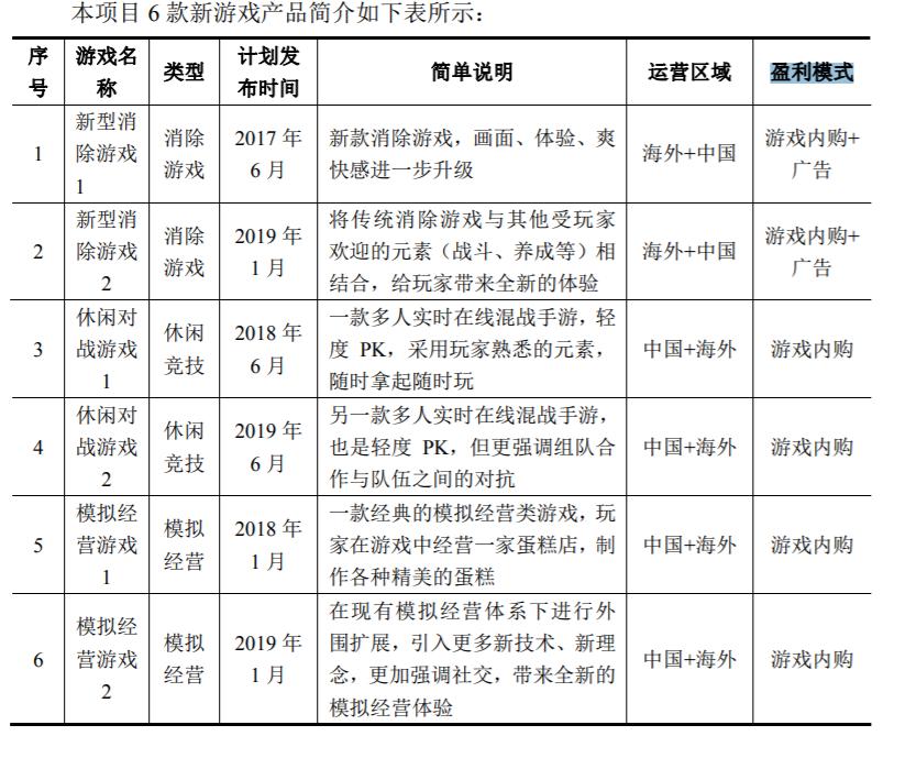 继续开发消除类游戏是公司的选择之一。2017 年 5 月,公司推出新的消除类游戏《怪兽消消消》。截至招股说明书签署日,游戏注册用户数近 150 万,最高日活跃用户数超过 40 万。募资用途也显示,公司未来还打算继续开发两款消除游戏。