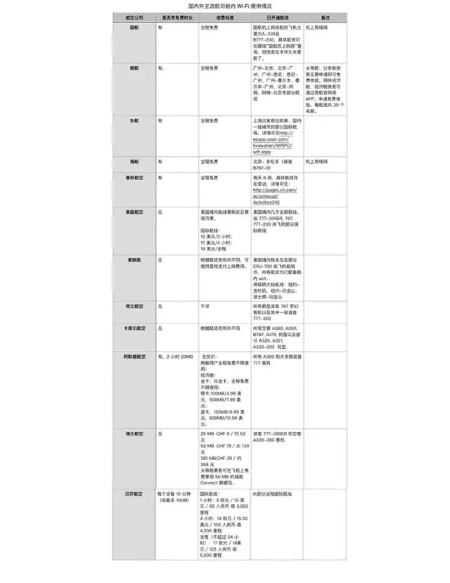 说了这么多,到底我们在搭乘哪些航司的航班时可以上网?