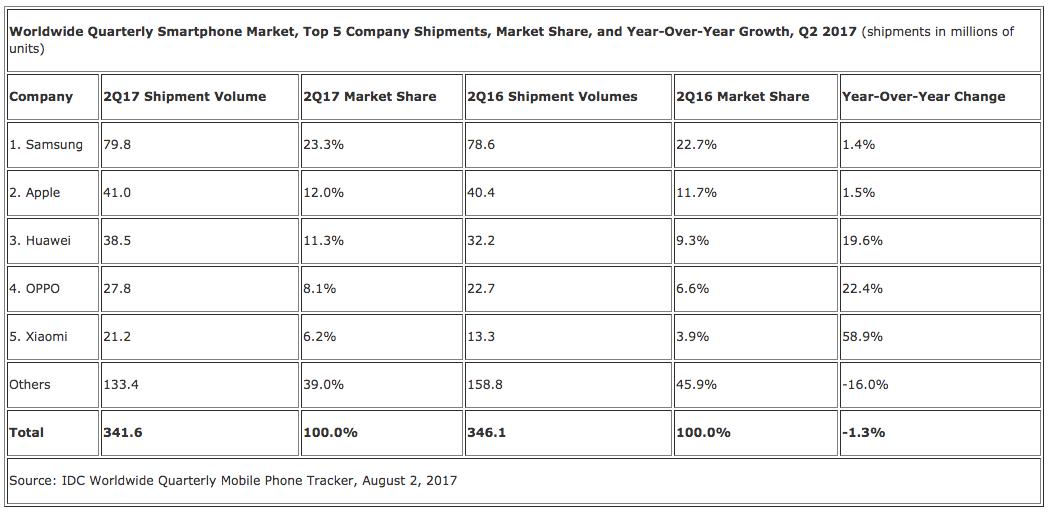 在全球智能手机出货量继续走低的情况下,中国的华为、OPPO和小米依然保持着两位数字的高速增长。而且对于华为来说,曾经说过的赶超三星和苹果的豪言壮语,真可以完成一半了?