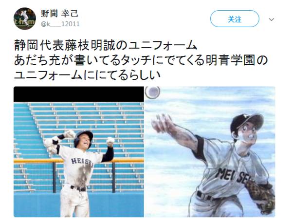 据《日刊Sports》报道,在今年8月8日开赛的日本第99届全国高等学校棒球选手权大赛中,静冈县代表的藤枝明诚(Fujieda Meisei)选手的棒球服上印有与自己名字同样读音的《棒球英豪》中明青学园棒球部“MEISEI”字样而登上热搜。