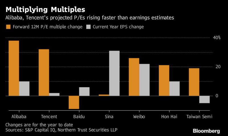 Campling在一份给客户的报告中写道:“像腾讯、阿里和Facebook这样的数字巨头理应获得更高的评级,但他们需要慢慢‘增长’到这样的评级而不是猛然上涨。”他强调了价格与收益之间的差距。“对于那些在这两个指标之间存在显著差距的股票,我们在考量这些股票会不会在短期内面临价格方面的压力。”