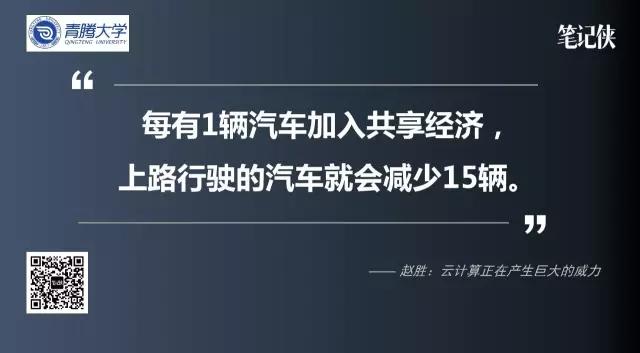 “随时使用,何必拥有”的价值观正在被世人接受,云计算正在产生巨大的威力。统计数据表明:每有1辆汽车加入共享经济,上路行驶的汽车就会减少15辆。