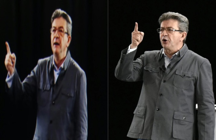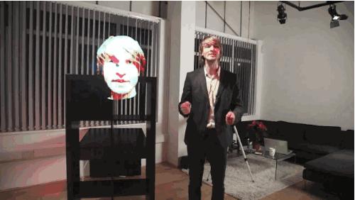 类似演唱会那种真人再现,原理为“佩珀尔幻象”。如年初,法国左翼阵线候选人让·吕克·梅朗雄实现两地分身演讲,由专业人士在里昂对梅朗雄本人进行拍摄,到另一地点使用投影机在地面上播放,视频通过45度角的全息膜折射,形成幻象。