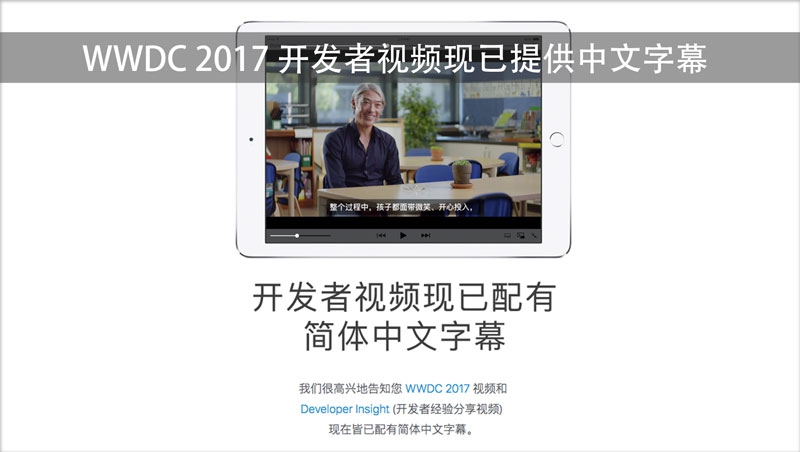 我们很高兴地告知您, WWDC 2017 视频和 Developer Insight (开发者经验分享视频) 现在皆已配有简体中文字幕。