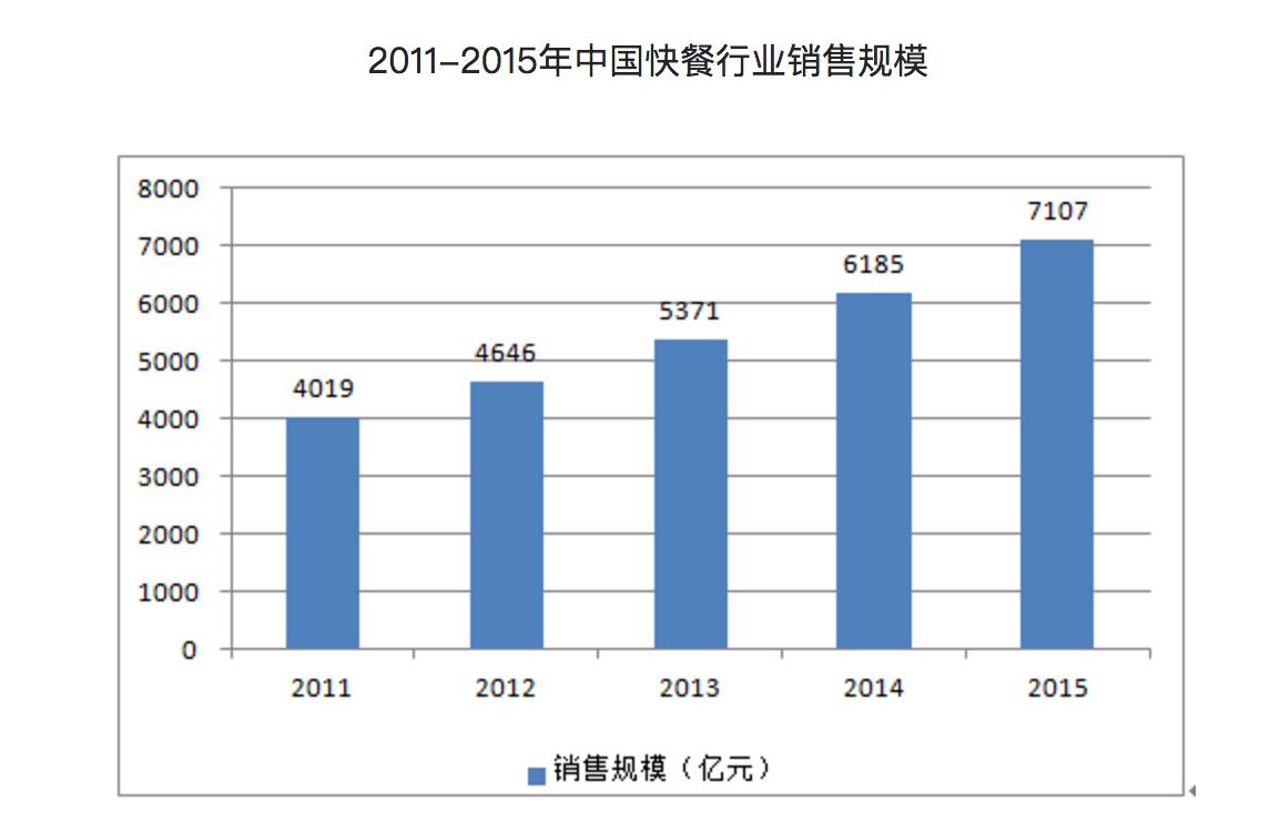 虽然在美国诸如肯德基和麦当劳一类的快餐业绩不佳,受到消费者健康潮流的冲击。但是在中国,尤其是三四线城市,快餐的市场还很有想象空间。根据市场研究机构英敏特报告,中国快餐零售市场将从2016年7120亿元人民币增长至2021年的1万亿元人民币,五年内年均复合增长率将达7.0%。