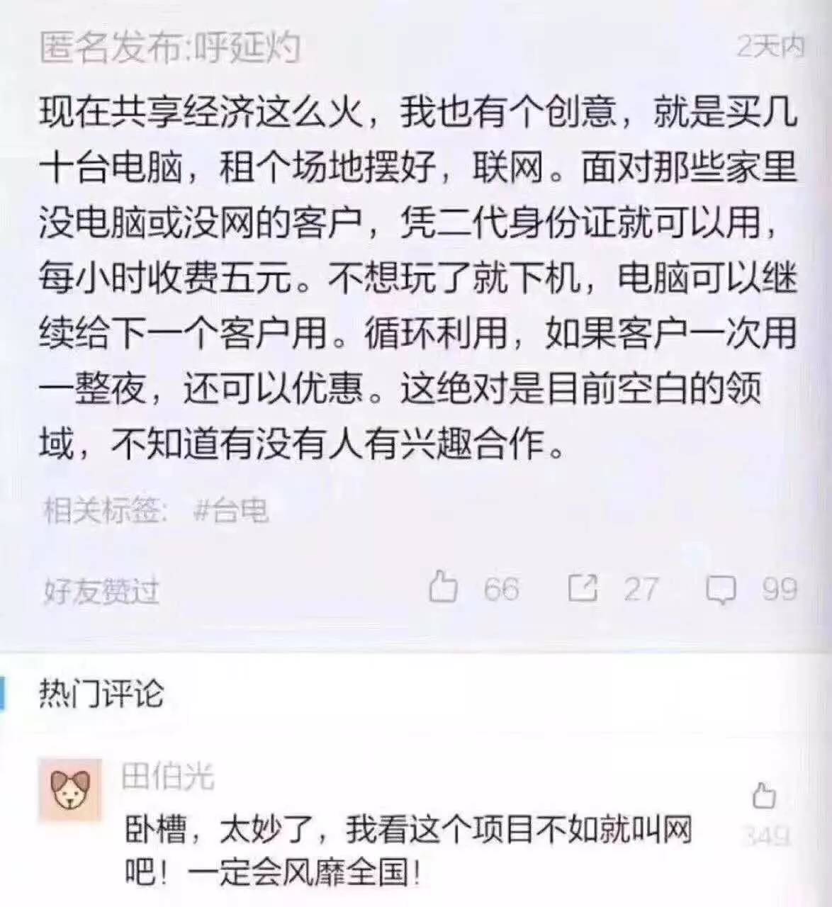 他们说什么?共享经济?这不就是我这么多年来干的活儿吗?