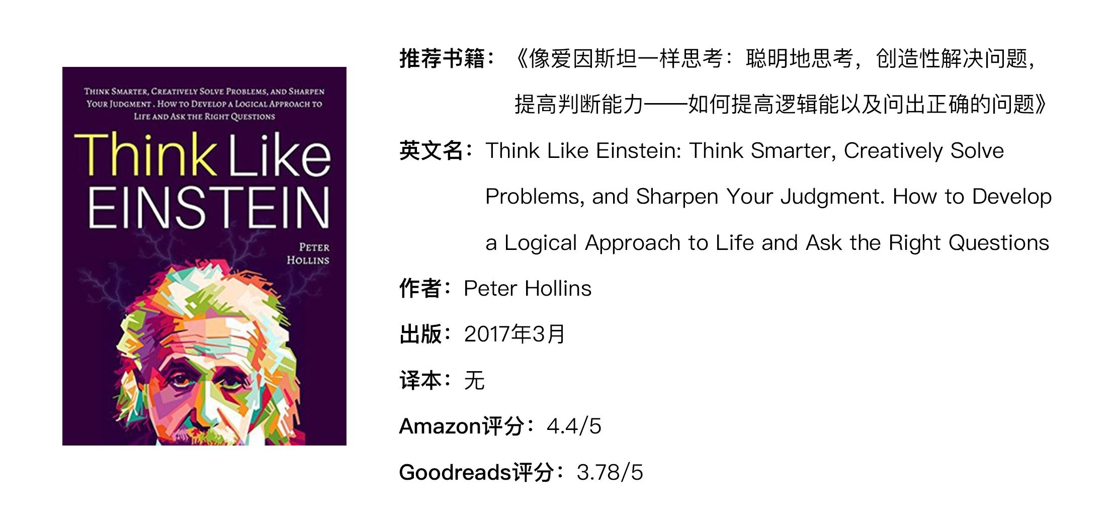 那怎么让自己的逻辑变得严密呢?一本名字就长到需要有良好逻辑思考能力才可理解的书《像爱因斯坦一样思考:聪明地思考,创造性地解决问题,提高判断能力——如何提高逻辑能力以及问出正确的问题( Think Like Einstein: Think Smarter, Creatively Solve Problems, and Sharpen Your Judgment. How to Develop a Logical Approach to Life and Ask the Right Questions)》,告诉我们如果是爱因斯坦向龙母解释“北境之外有异鬼”,他会如何精进自己讲道理的逻辑。