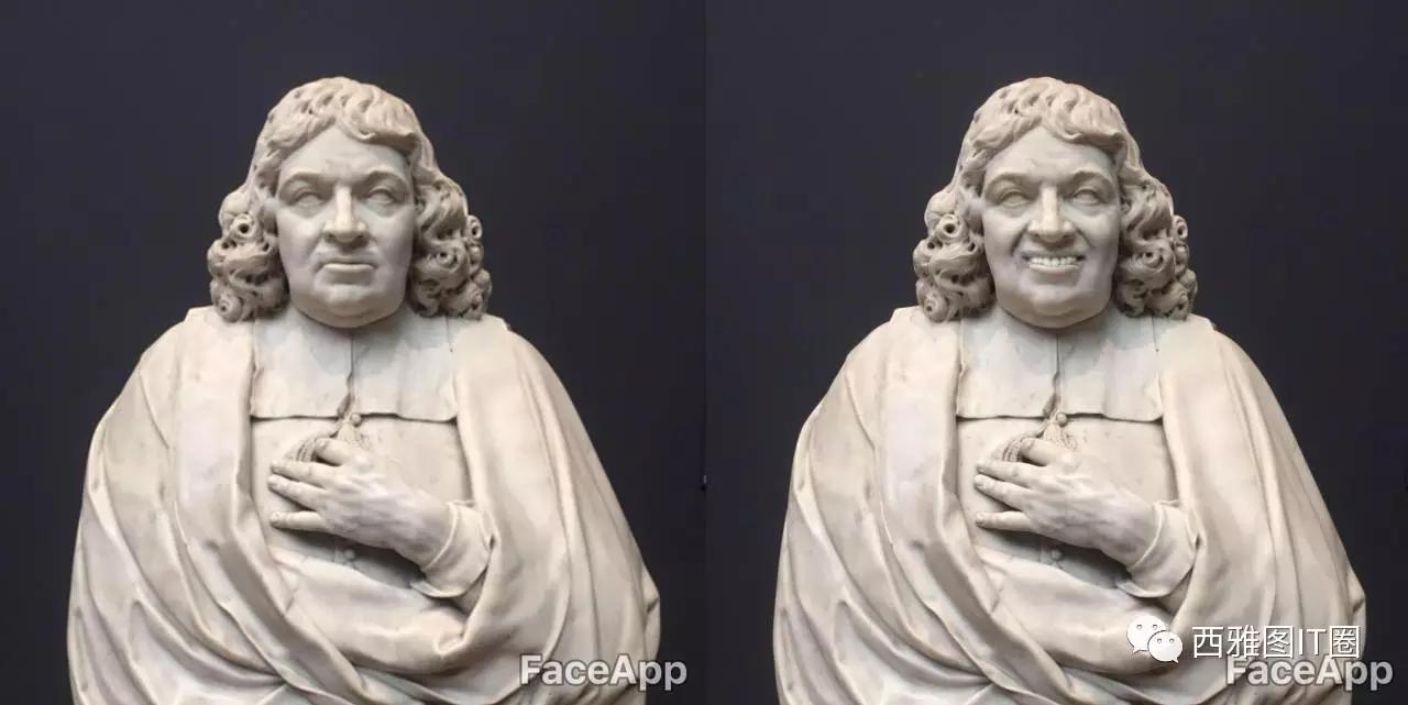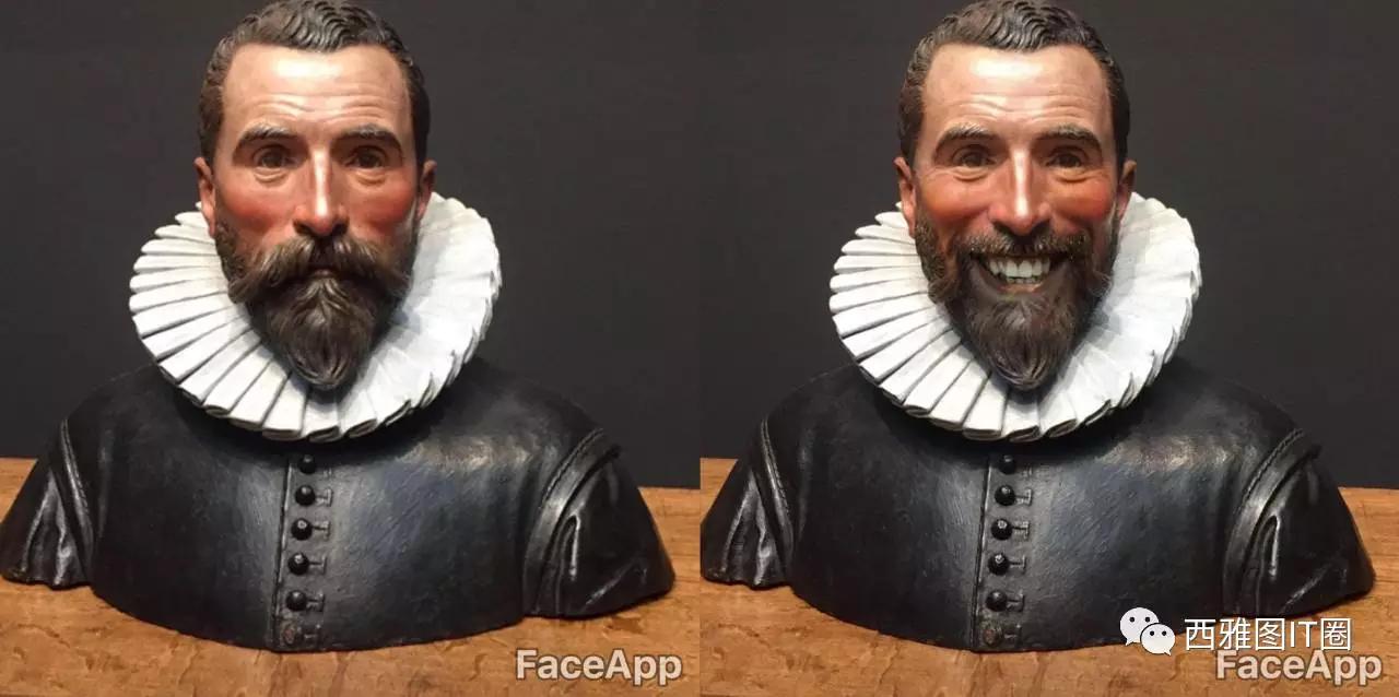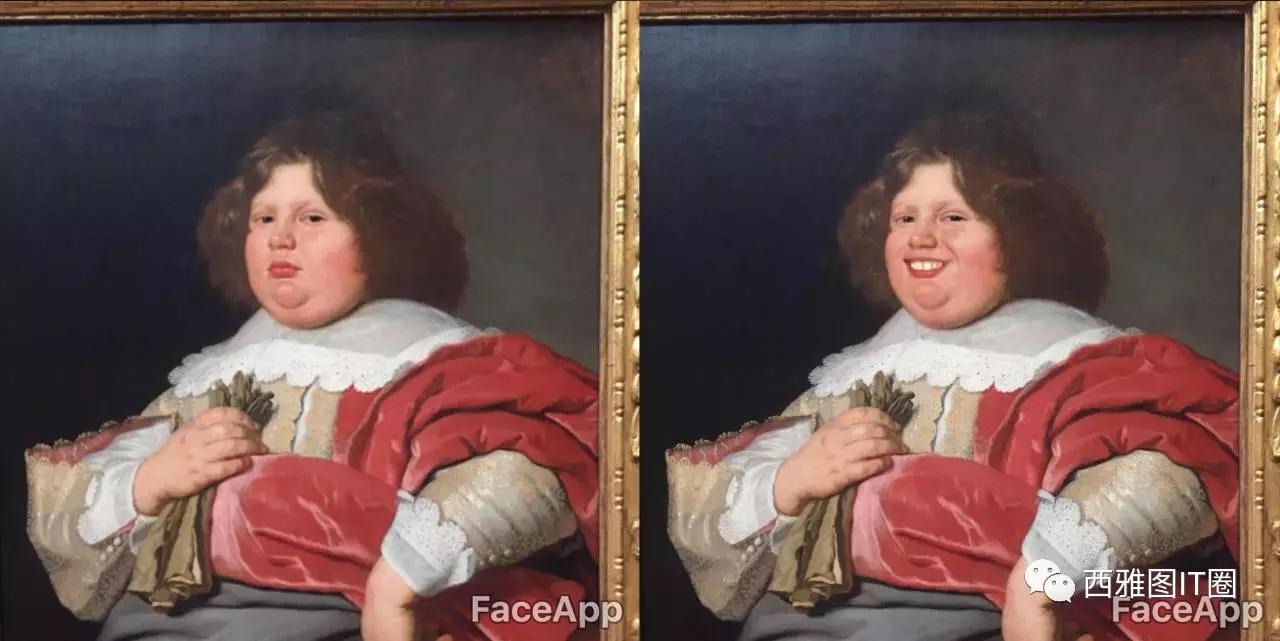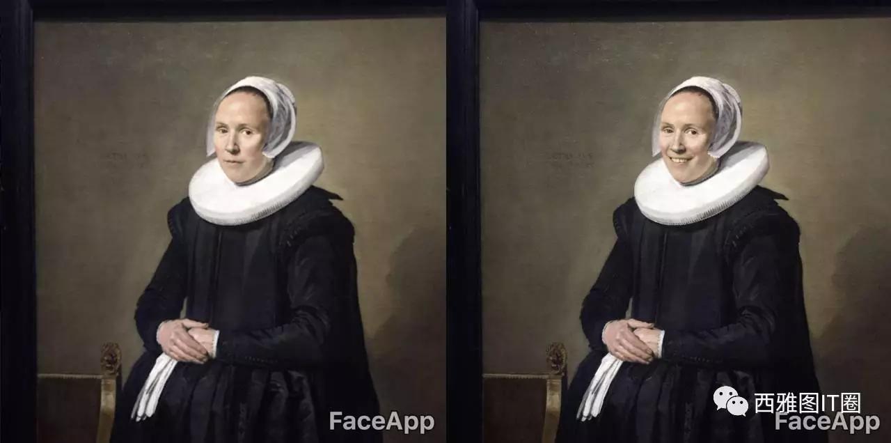 比如前段时间,一个用户就用FaceApp把一家位于阿姆斯特丹博物馆里面的面无表情的画像们都变成了笑脸: