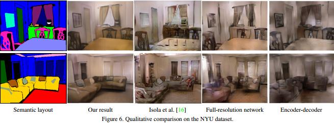 第一行是输入的语义布局,第二行是陈启峰AI得出的结果,第三行是别的系统得出的结果,可见陈启峰的AI得出的结果更具实感