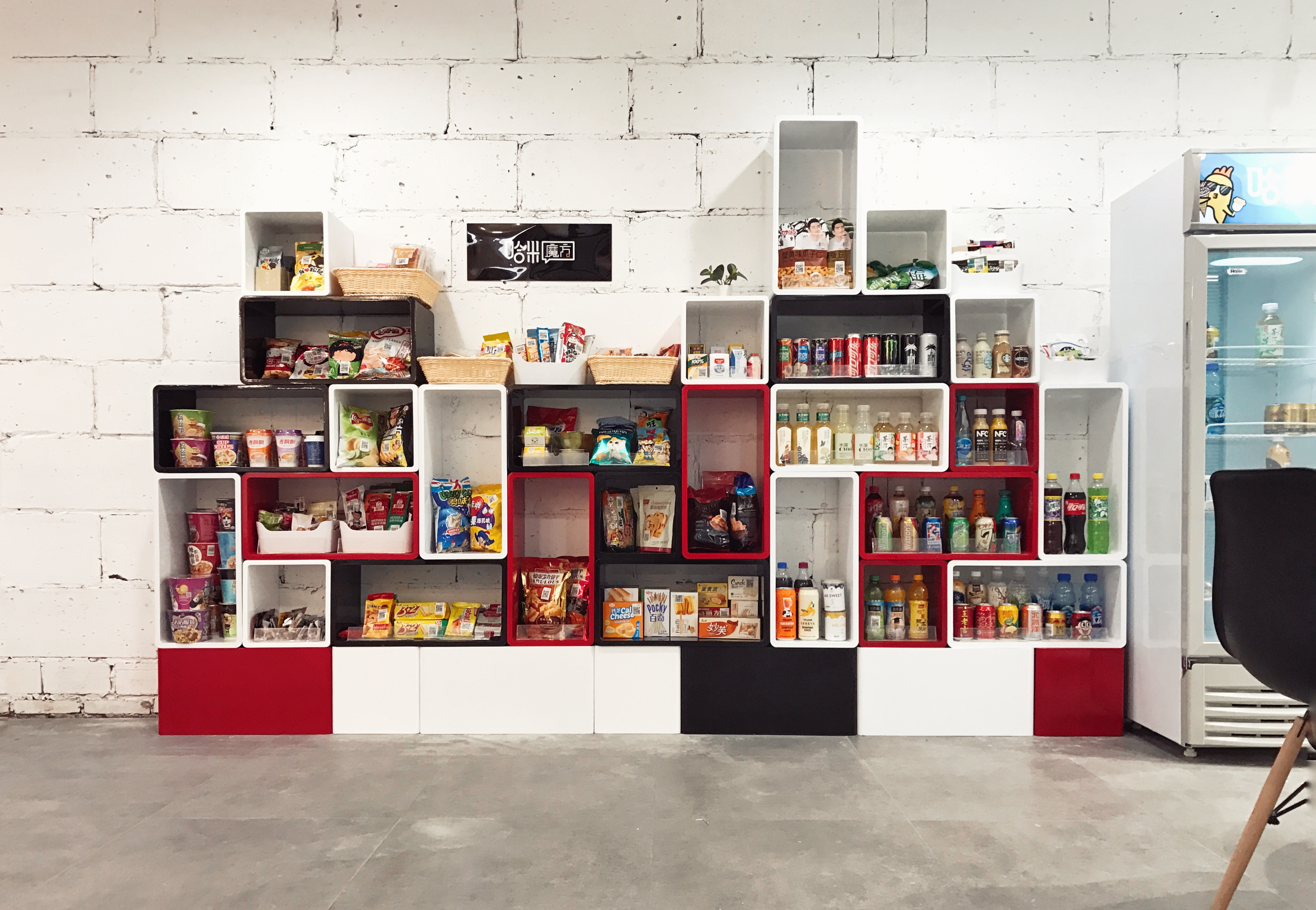 市面上大多数办公室零售终端都是一个货架,但哈米选择了做魔方货柜。一方面,这能配合不同办公室的大小和装修风格,让货柜在办公环境里显得美观和谐;另一方面,魔方货柜方便组合、摆放,可进入茶水间,放在桌面上。通常一个魔方能摆放饮品 10-12 瓶,零食则根据大小形态不等。