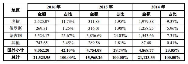 根据耐普矿机的招股说明书,公司2016年对海外的销售额近9100万,相比2015年将近翻了一倍。