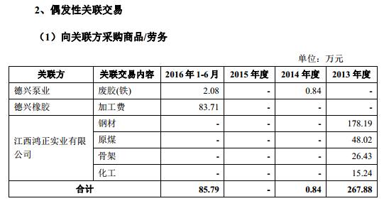 招股说明书显示,江西鸿正实业和耐普矿机,曾在2013年涉及钢材、原煤、骨架和化工相关来往资金267.88万元。2014年至今,双方再无交集。