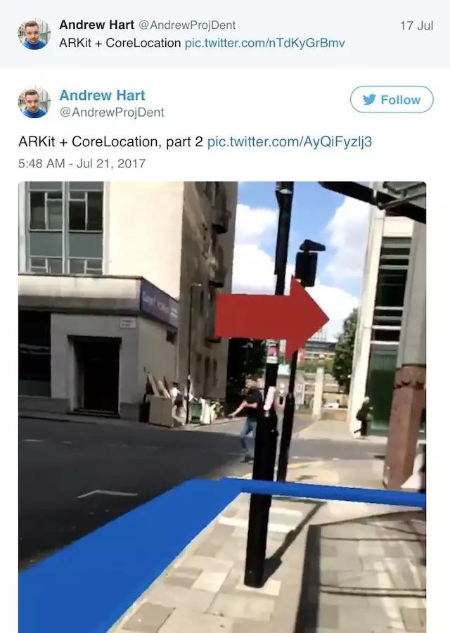 除此之外,地图 APP 似乎将会使用你的手机相机。iPhone 8 会有什么功能现在还是个未知数,但是这个 3D 箭头确实值得注意。