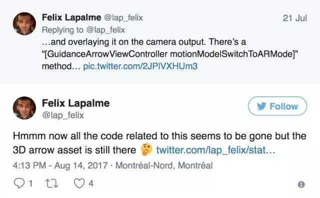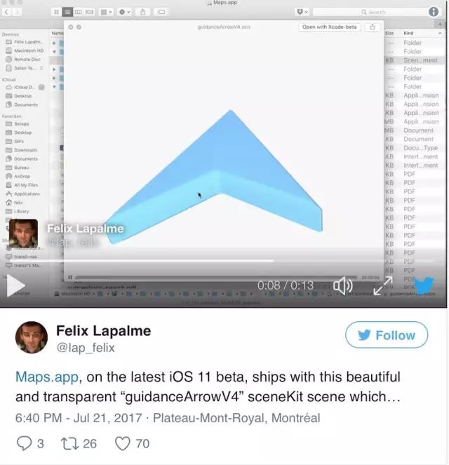 这不,Felix 挖掘出一个测试版的 iOS 11,并在地图 APP 中发现一个神秘的 3D 箭头: