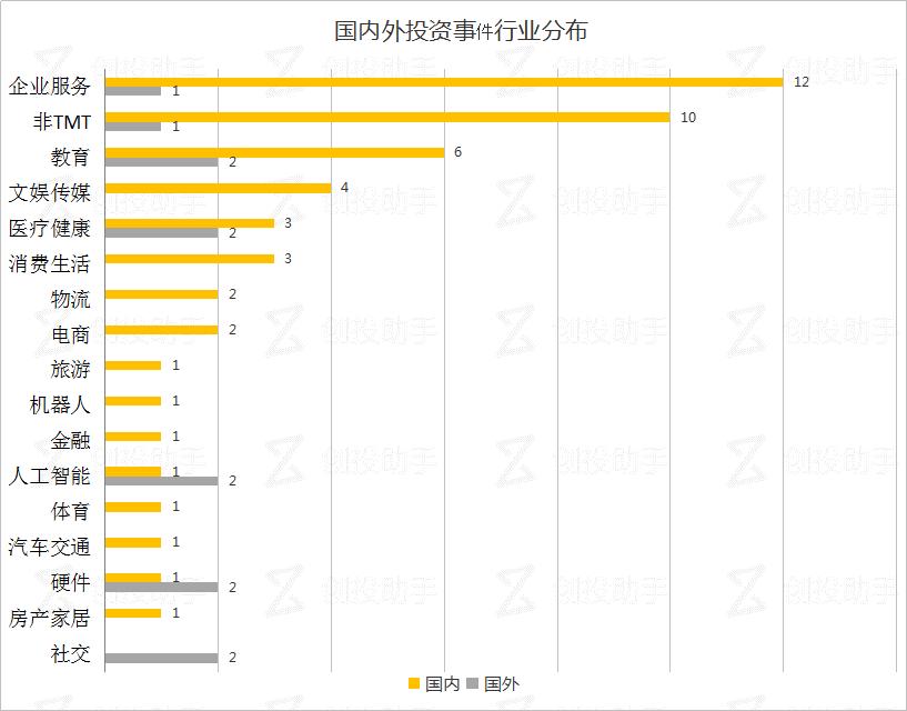 本日国内外共有61起融资事件,分布在17个行业中。国内49个项目获得融资,国外12个项目获得融资。