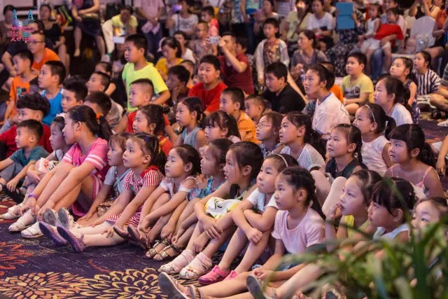其中《凯叔讲故事》大概是IP化最为成功的工作坊。凯叔是音频平台上知名的主播,为小朋友讲了上千个故事,仅在喜马拉雅上开辟的《凯叔讲故事》节目就获得了1.7亿次的播放量。凯叔的加盟带来了流量。根据现场的情况,《凯叔讲故事》是人气最高的工坊,礼堂挤满了孩子和家长,很多人甚至站着听故事,还有一些家庭甚至为了争抢座位发生了争执。
