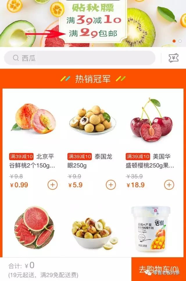 下面,《零售老板内参》APP(微信ID:lslb168)将以天猫超市闪店为例,跟大家探讨一下“包邮价”下的生鲜电商成本、定价策略和仓配的相关问题。