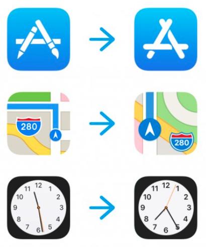 尽管此前,苹果公司也对多个应用程序的标识进行过修改,但这次是苹果近年来改动数量最多、变动最大的一次。