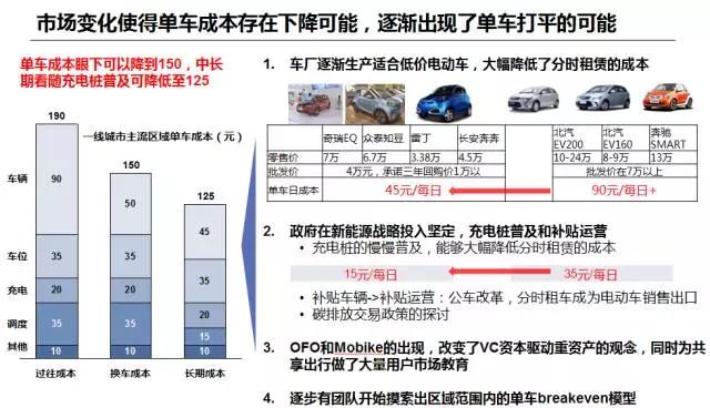 1)车价下降:大量车企开始生产4-6万的新能源车型,这使得单车日均成本从原来的90元+降低到45元左右
