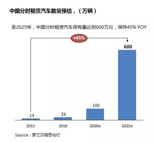简单粗暴估算,滴滴出行日订单量2000万,客单价在20元,估值500亿美金。按照罗兰贝格估算,2025年有600万辆分时租赁汽车,每辆车每天3-4单,日订单量约2000万单,客单价在40元,那就已经是个千亿美金市场了。再者保守假设分时租车每天每车使用5个小时,行驶50公里,意味每年110亿小时和用户在一个封闭空间相处,跑出1095亿公里的行驶大数据。因为分时租赁公司拥有对车辆的所有和控制权,也是自动驾驶最完美的应用场景和试验田,你能想出的所有商业模式似乎都有可能。不能再继续想下去了,因为总会把自己吓到。