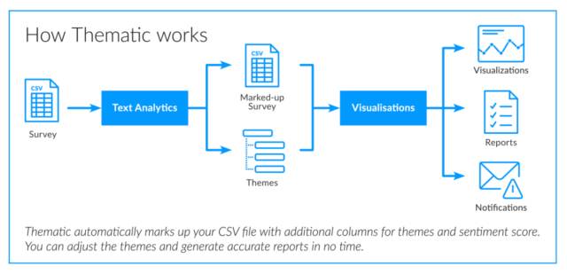Thematic 也是一家善于非结构化数据分析的初创公司。对于商家来说,无论是吐槽还是赞许,反馈多总是好事,但是如何从海量非结构化数据中提取洞见,可不是件容易的事情。这家公司能够专注分析非结构化数据来源,将消费者反馈转化为交互式可视化报告,根据他们的需求总结出一般性问题并生成没有偏见的可量化观点。帮助公司充分了解客户的全局视图及需求。公司成立以来,已分析百万数据量。目前正在为合作伙伴(比如达沃丰等)提供服务。