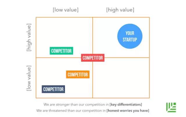 最好用一张图表来显示你在市场中地位。另一种方法是做一个简单的对比表。
