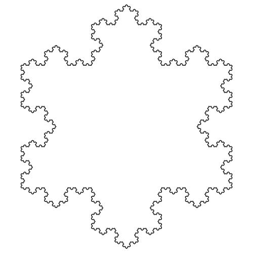 对生成的图形再次应用科赫曲线规则,不断继续。