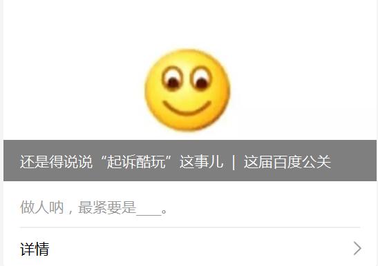 针对酷玩实验室的回应,许久未更新的“这届百度公关”也终于重出江湖,在今天(8月24日)发布微信文章,文中认为百度起诉的是公司,酷玩实验室却在回应文章中以个人名义哭穷,并讽刺酷玩实验室从前的标题党和“洗稿”行为。