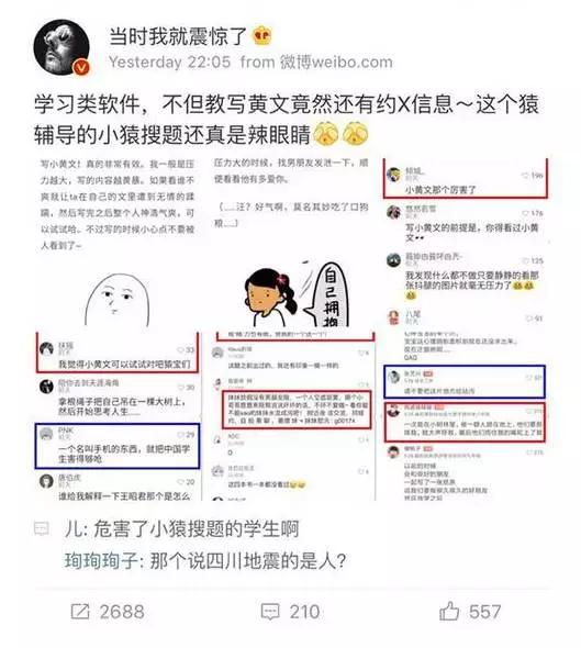 小猿搜题APP内现涉黄内容,并被微博与电台报道。