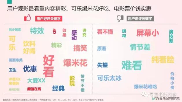 从用户评价来看,观影最看重内容精彩、可乐爆米花好吃、电影票价实惠等。