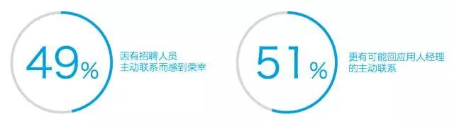 从调查结果来看,49%的候选人愿意收到HR的主动联系,而当用人经理主动联系他们时,51%的候选人更有可能回应。在候选人眼中,用人经理更具权威,因为他们可能成为候选人未来的“老板”,对业务也更加精通。因此,由他们发出的消息也会得到更多的回复。