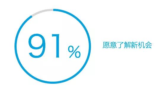 与梦想中的机会失之交臂而产生的挫败感,是每位候选人都不愿意面对的。因此,他们往往会对新机会保持开放态度。领英数据显示,91%的候选人都很愿意了解新的工作机会。