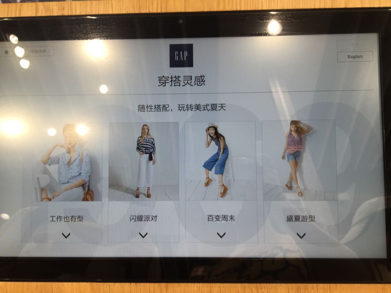 门店数字化,对中国消费者而言不算陌生,优衣库今年开始在店内投放了电子试衣屏,其他零售巨头如肯德基、麦当劳也都在对门店进行移动数字技术的改造。为了加快在中国的发展,GAP也开始用数字技术来投消费者所好,GAP在新门店内第一次投放了“牛仔电子屏”——牛仔一直是GAP的基因和核心产品元素。GAP大中华区视觉陈列总监Rickie Harper透露这是GAP在试着将科技和店内最好的商品融合。