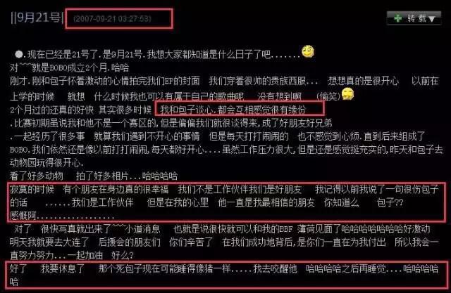 当年的两人,感情是真好,没人会想到,“BOBO永在”以后会变成一句笑话。BOBO组合解散,固然有经纪人流动性极强、粉丝撕逼等客观原因,不过究其根本,还是因为卖腐不适合当组合人设,腐到那儿份儿上很不好把握,最后只能分道扬镳。