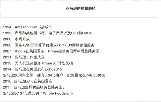 6月,以137亿美元收购了连锁超市Whole Foods,包括旗下的400多个零售网点。